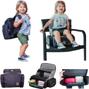 3 in 1 – Cozy Travel Booster Seat / Backpack / Diaper Bag for Your Toddler/Baby. Perfect for Home or Travel. Great Baby Shower Gift (Black/Gray)