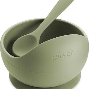 Ali+Oli Silicone Suction Bowl & Spoon for Baby and Toddler (Sage)