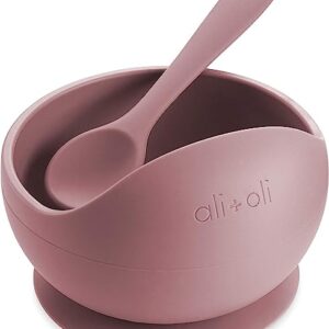 Ali+Oli Silicone Suction Bowl & Spoon for Baby and Toddler (Mauve)