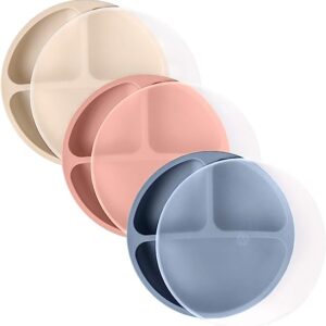 100% Silicone Plates with Lids for Toddlers – 3 Pc Set, Divided Baby Plates, Dishwasher & Microwave Friendly, Food Grade Silicone Kids Plates with Dividers