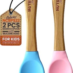 2-Piece Bamboo Spoon Set – Wooden Baby Feeding Utensils with Soft Silicone Head, Ergonomic Handle, BPA-Free, Lead-Free, Hypoallergenic, For Infant, Toddlers, or Children Aged 4-72 Months