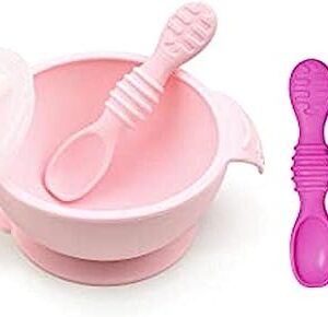 Bumkins Baby Feeding Set, Silicone Suction Bowl, Lid, Dipping Spoons, First Feeding, Baby Led Weaning, Ages 3 Months+