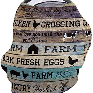 Breastfeeding Scarf Carseat Canopy Nursing Scarf Baby Car Seat Covers Retro Farm Barn Animal Cow Pig Horse Chicken on Wood Texture Stretchy High Chair Cover Infant Carrier Cover