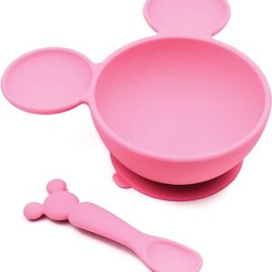 Bumkins Disney Minnie Mouse Suction Silicone Baby Feeding Set, Bowl, Lid, Spoon, BPA-Free, First Feeding, Baby Led Weaning , 3 Piece Set