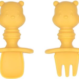 Bumkins Utensils, Disney Silicone Chewtensils, Baby Fork and Spoon Set, Training Utensils, Baby Led Weaning Stage 1 for Ages 6 Months+ Winnie The Pooh
