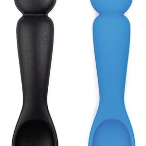 Bumkins Utensils, Disney Mickey Mouse, Silicone for Dipping, Feeding, Baby Led Weaning, Training Spoons, Ages 3 Months+ (2-Pack) Blue, Black
