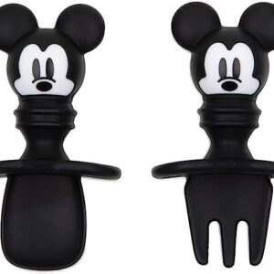 Bumkins Utensils, Disney Mickey Mouse, Silicone for Dipping, Feeding, Baby Led Weaning, Training Spoons, Ages 3 Months+ (2-Pack) Black