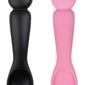 Bumkins Utensils, Disney Mickey Mouse, Silicone for Dipping, Feeding, Baby Led Weaning, Training Spoons, Ages 3 Months+ (2-Pack) Pink, Black