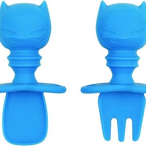 Bumkins Utensils, DC Comics Batman Silicone Chewtensils, Baby Fork and Spoon Set, Training Utensils, Baby Led Weaning Stage 1 for Ages 6 Months+