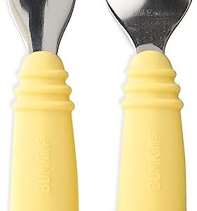 Bumkins Utensils Silicone and Stainless Steel Fork and Spoon Set Toddler Silverware Self Feeding in Pineapple, Pineapple-SFT