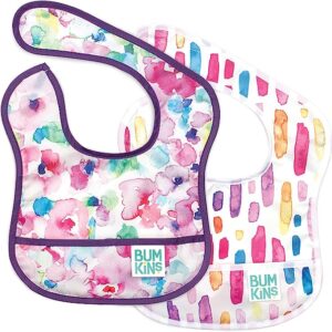 Bumkins Starter Bib, Baby Bib Infant, Waterproof Fabric, Fits Infants and Babies 3-9 Months ? Watercolors & Brushstrokes (2-Pack)