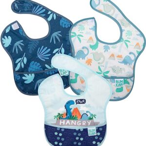 Bumkins SuperBib, Baby Bib, Waterproof, Washable Fabric, Fits Babies and Toddlers 6-24 Months – Hangry, Dinosaurs, Blue Tropic (3-Pack)