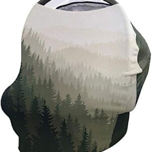 Car Seat Canopy Nursy Cover Forest, Multi Use Breastfeeding Scarf for Infant Carseat Canopy Stroller Shopping Cart Highchair Northern World with Coniferous Trees Scandinavian Woodland