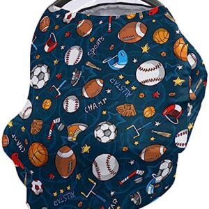 Car Seat Canopy Nursy Cover Sport, Multi Use Breastfeeding Scarf for Infant Carseat Canopy Stroller Shopping Cart Highchair Many Basketball Baseball and Football Icons Champ Gloves Dark Backdrop