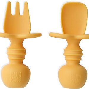 Bumkins Utensils, Silicone Chewtensils, Fork and Spoon Set, Training Utensils, Led Weaning Stage for Ages 6 Months+ in Tangerine