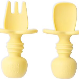 Bumkins Utensils, Silicone Chewtensils, Fork and Spoon Set, Training Utensils, Led Weaning Stage for Ages 6 Months+ in Pineapple, Pineapple-SFI , 2 Piece Set