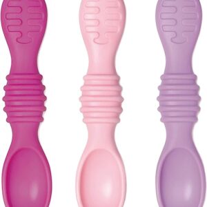 Bumkins Utensils, Silicone for Dipping, Feeding, Baby Led Weaning, Training Spoons, Ages 3 Months+ (3-Pack)