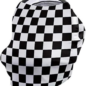 Car Seat Canopy Nursy Cover, Simple Black and White Checkered Flag Multi Use Breastfeeding Scarf for Infant Carseat Canopy, Stroller, Shopping Cart, Highchair