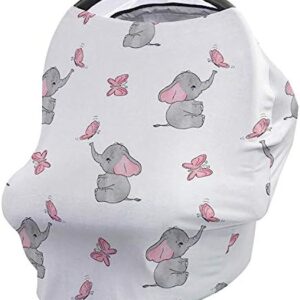 Carseat Cover for Girls Babies, Elephant Nursing Covers for Breastfeeding Baby, Car Seat Stroller Combos Cover,Pink Magic Butterfly Infant Carseat Canopy,Newborn Shopping Cart Covers