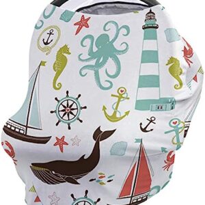 Car Seat Canopy Nursy Cover, Octopus Hippocampus Anchor Sailboat Multi Use Breastfeeding Scarf for Infant Carseat Canopy, Stroller, Shopping Cart, Highchair