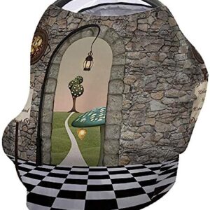 Car Seat Canopy Nursy Cover Vintage Wonderland, Multi Use Breastfeeding Scarf for Infant Carseat Canopy Stroller Shopping Cart Highchair Welcome Wonderland Black and White Floor Mushroom Lantern