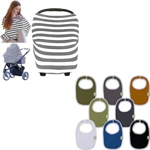 Carseat Canopy Cover and Organic Baby Bibs for Boys & Girls Bundle – Nursing Breastfeeding Covers Up, Shopping Cart Cover (BFF Gray) – Organic Cotton Teething Bib (Basic)