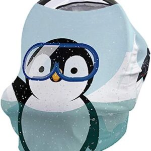 Cute Animal Nursing Cover for Breastfeeding, Soft Stretchy Breathable for Baby Car Seat Covers Canopy Shopping Cart Scarf Stroller Cover, Penguin with Diving Goggles