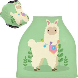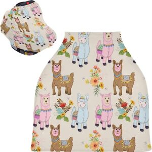 Cute Alpaca Flower Baby Car Seat Covers – High Chair Cover Stretchy Nursing Scarf, Multi-use Carseat Canopy, for Boys and Girls
