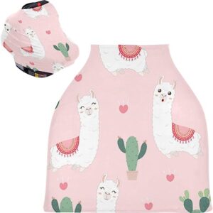 Cute Alpaca Cactus Baby Car Seat Covers – Stroller Cover High Chair Cover, Multi-use Carseat Canopy, for Babies Girl