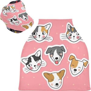 Cute Animal Cat Dog Baby Car Seat Covers – High Chair Cover Stretchy Nursing Scarf, Multi-use Carseat Canopy, for Girls
