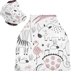Cute Animal Dinosaurs Baby Car Seat Covers – Unisex Baby Car Seat Cover High Chair Cover Shopping Cart, Multi-use Carseat Canopy, for Baby