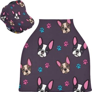 Cute French Bulldog Puppy Pattern Baby Car Seat Covers – High Chair Cover Stretchy Nursing Scarf, Multi-use Carseat Canopy, for Girls