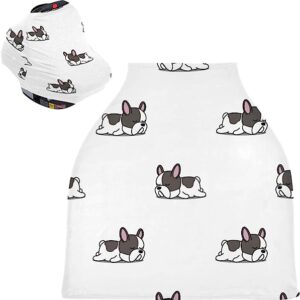 Cute French Bulldog Puppies Baby Car Seat Covers – High Chair Cover Stretchy Nursing Scarf, Multi-use Carseat Canopy, for Baby Boys and Baby Girls Shower Gift