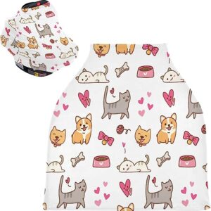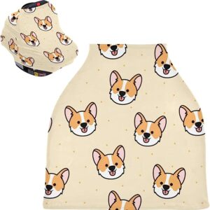 Cute Corgi Dog Cartoon Pattern Baby Car Seat Covers – Unisex Baby Car Seat Cover High Chair Cover Shopping Cart, Multi-use Carseat Canopy, for Boys and Girls Shower Gift