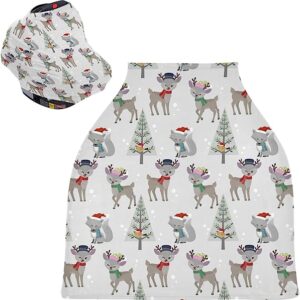 Cute Deer Wolf Baby Car Seat Covers – High Chair Cover Stretchy Nursing Scarf, Multi-use Carseat Canopy, for Baby Shower Gifts