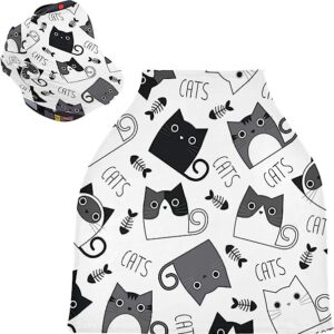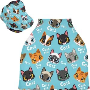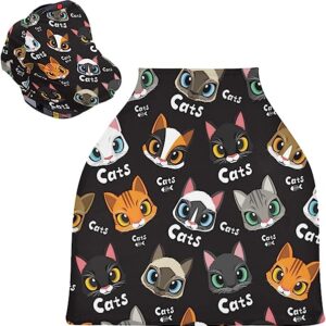 Cute Cats Baby Car Seat Covers – Unisex Baby Car Seat Cover High Chair Cover Shopping Cart, Multi-use Carseat Canopy, for Babies and Breastfeeding Mothers