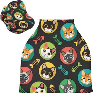 Cute Cats Fishbone Baby Car Seat Covers – Unisex Baby Car Seat Cover High Chair Cover Shopping Cart, Multi-use Carseat Canopy, for Babies