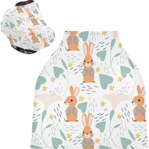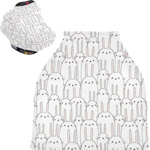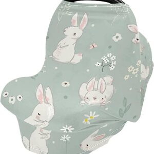 Cute Rabbit Bunny Flower Nursing Cover Breastfeeding Scarf, Stretchy Infant Carseat Canopy Multi-use Stroller Cover Car Seat Cover for Baby Girl Boy
