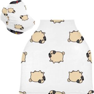 Cute Pug Dog Cartoon Pattern Baby Car Seat Covers – Unisex Baby Car Seat Cover High Chair Cover Shopping Cart, Multi-use Carseat Canopy, for Babies