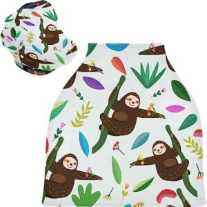 Cute Sloth Baby Car Seat Covers – High Chair Cover Stretchy Nursing Scarf, Multi-use Carseat Canopy, for Unisex Baby