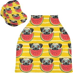 Cute Pug Dog Watermelon Baby Car Seat Covers – Stroller Cover High Chair Cover, Multi-use Carseat Canopy, for Boys and Girls