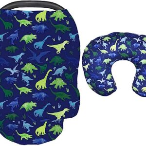 Dinosaur Nursing Pillow Cover & Carseat Cover Set, Breastfeeding Pillow Slipcover & Car Seat Canopies for Baby Boys & Girls, Nursing Pillow Case & Stroller Covers for Newborn, Soft Fabric Fits Snug On