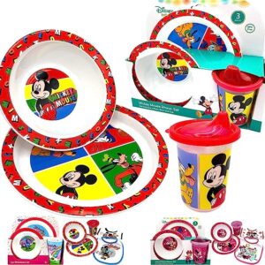 Disney Classic Mickey Baby Toddler Utensil Dinnerware Dish Feeding Set Gift Box including Break Resistant Bowl, Dish Plate, Tumbler Cups – Safe BPA free, Easy to Clean, Perfect Gifts for Kids