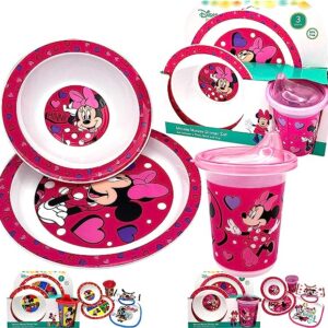 Disney Classic Minnie Baby Toddler Utensil Dinnerware Feeding Dish Set Gift Box including Break Resistant Bowl, Dish Plate, Tumbler Cups – Safe BPA free, Easy to Clean, Perfect Gifts for Kids