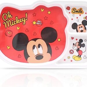 Finex 3 Pcs Set Mickey Mouse Melamine Resin Divided Plate Dinnerware Dinner Meal Dishes Feeding Set with Matching Spoon and Fork Utensil Food Grade Safe Flatware Sets