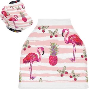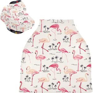 Flamingo Baby Car Seat Covers – High Chair Cover Stretchy Nursing Scarf, Multi-use Carseat Canopy, for Baby Shower Gifts