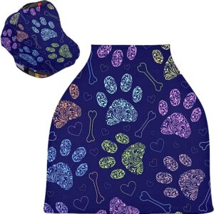 Floral Animal Paws Baby Car Seat Covers – Stroller Cover High Chair Cover, Multi-use Carseat Canopy, for Newborns