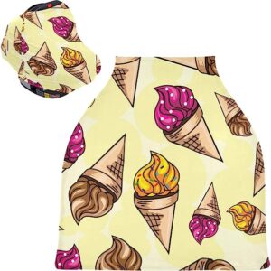 Ice Cream Baby Car Seat Covers – Unisex Baby Car Seat Cover High Chair Cover Shopping Cart, Multi-use Carseat Canopy, for Babies and Breastfeeding Mothers