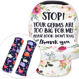 Infant Canopy Cover & Seat Belt Covers for Baby, No Touching Sign Car Seat Covers and Toddlers Stroller Seat Strap Covers, Multiuse Nursing Covers for Breastfeeding, Seat Belt Protectors for Ki