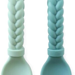 Itzy Ritzy Silicone Spoon & Fork Set; Baby Utensil Set Features A Fork and Spoon with Looped, Braided Handles; Made of 100% Food Grade Silicone & BPA-Free; Ages 6 Months and Up, Mint